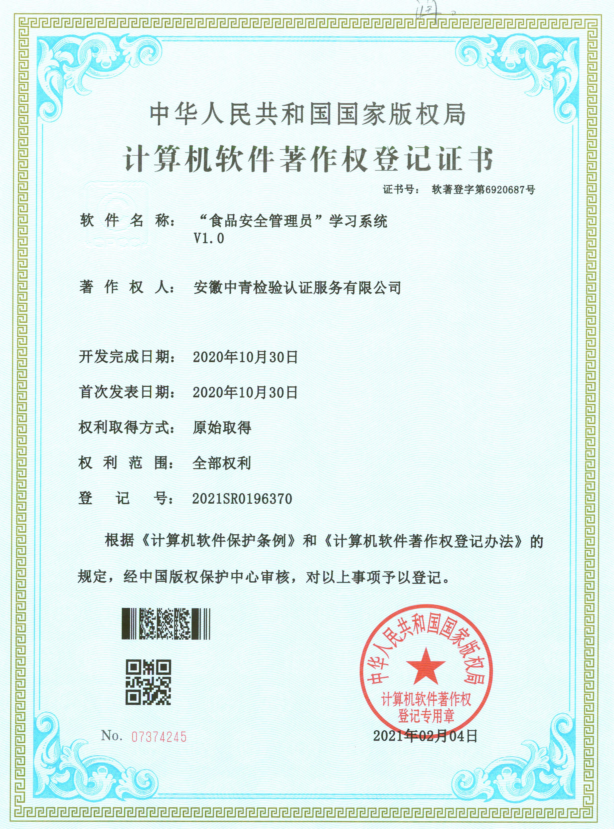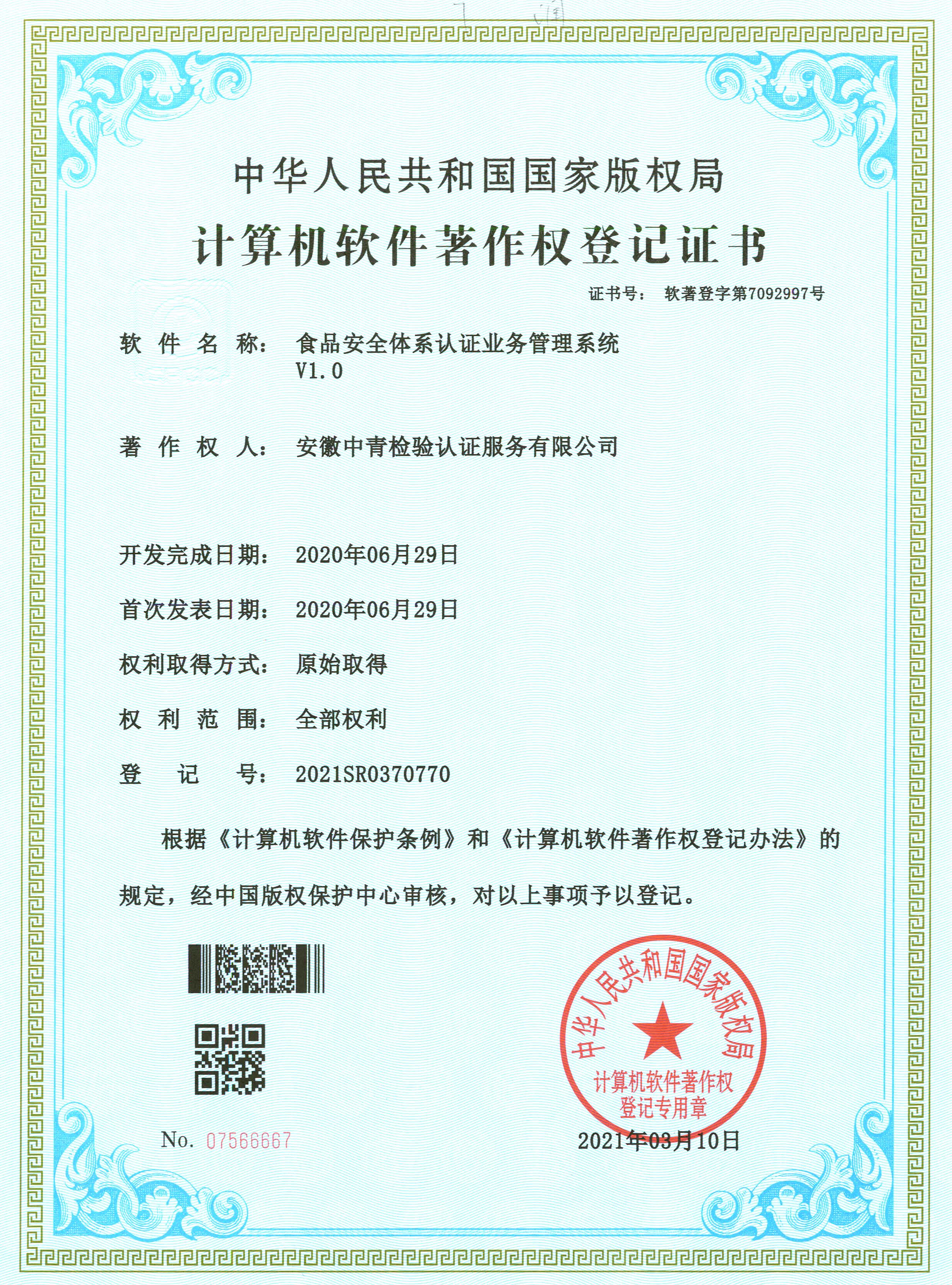 安徽中青檢驗認證服務(wù)有限公司成立于2017年6月6日,2018年1月3日通過國家認證認可監(jiān)督管理委員會批準,現(xiàn)認證領(lǐng)域:質(zhì)量管理體系、環(huán)境管理體系、職業(yè)健康安全管理體系、食品安全管理體系、HACCP管理體系、有機產(chǎn)品認證、良好農(nóng)業(yè)規(guī)范、服務(wù)體系、醫(yī)療器械質(zhì)量管理體系、企業(yè)誠信管理體系、食品工業(yè)企業(yè)誠信管理體系、食安安徽品牌等類別認證。